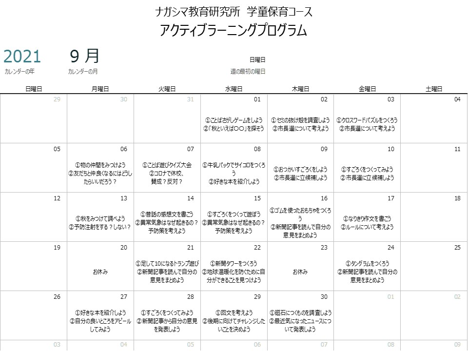 ここでは、2021年9月のアクティブラーニングプログラムをご紹介いたします。
