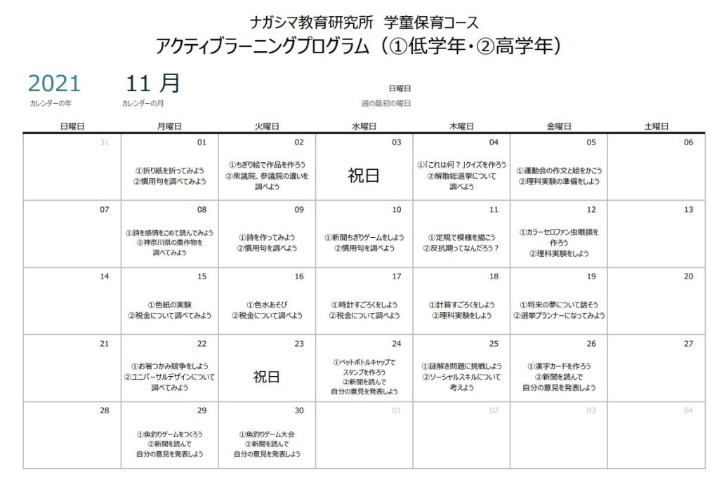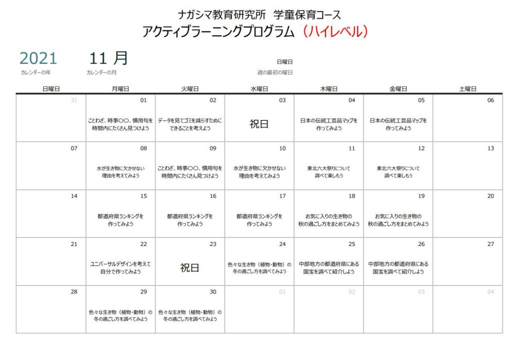 ここでは、2021年11月のアクティブラーニングプログラムをご紹介いたします。