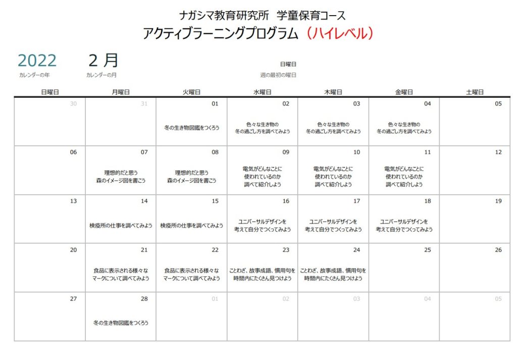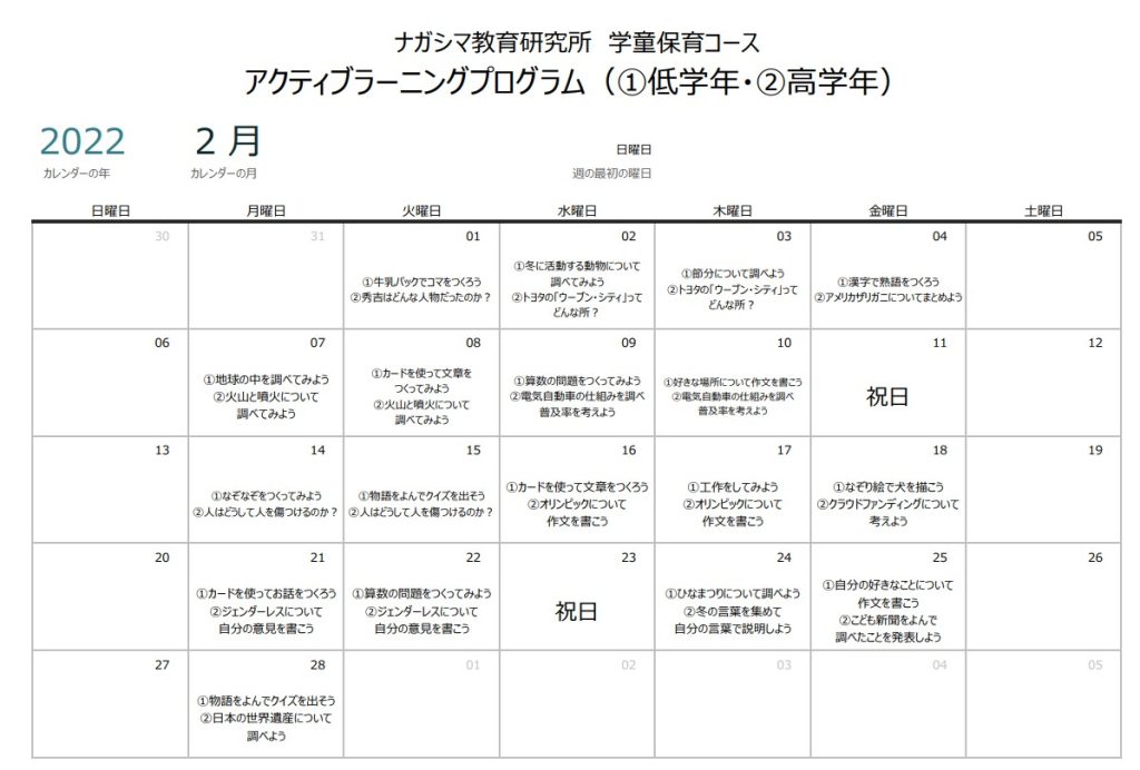ここでは、2月のアクティブラーニングの月間スケジュールをご紹介します。