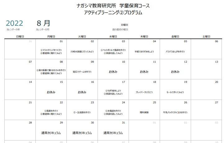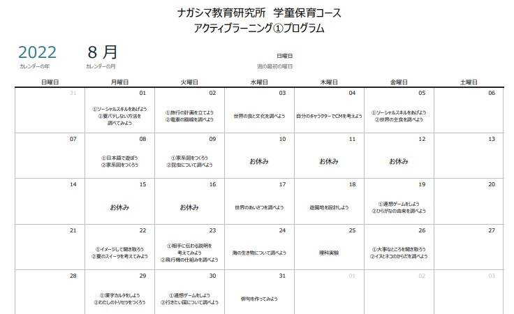ここでは、8月のアクティブラーニングの月間スケジュールをご紹介します。