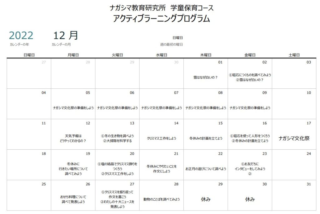 ここでは、11月のアクティブラーニングの月間スケジュールをご紹介します。