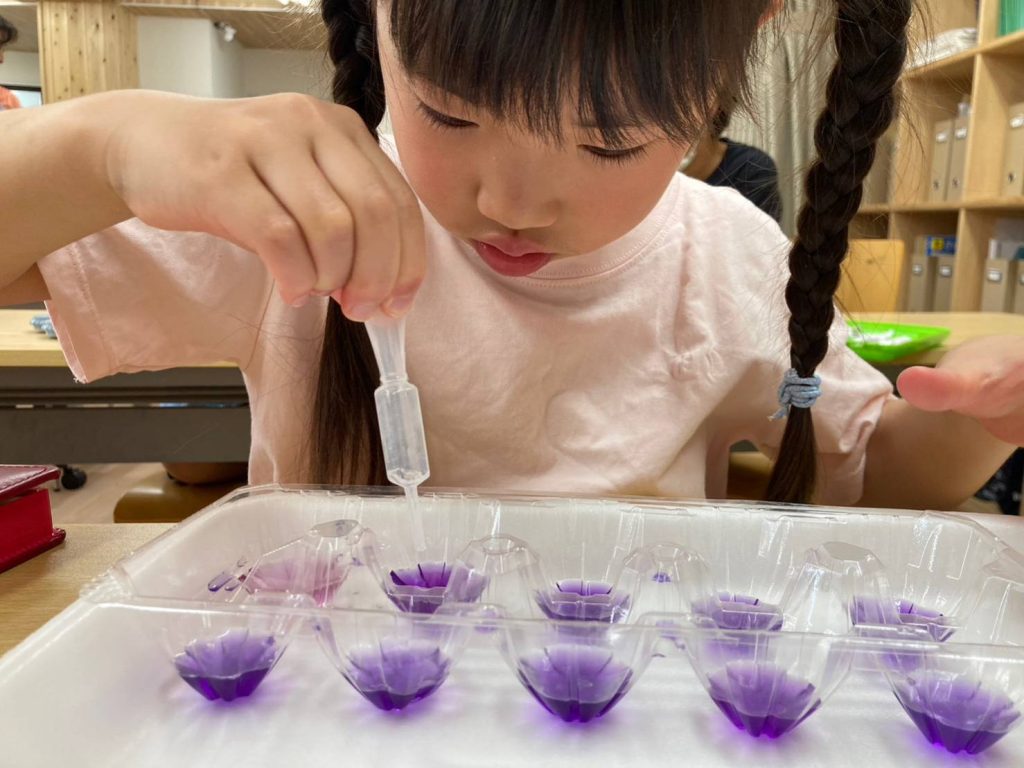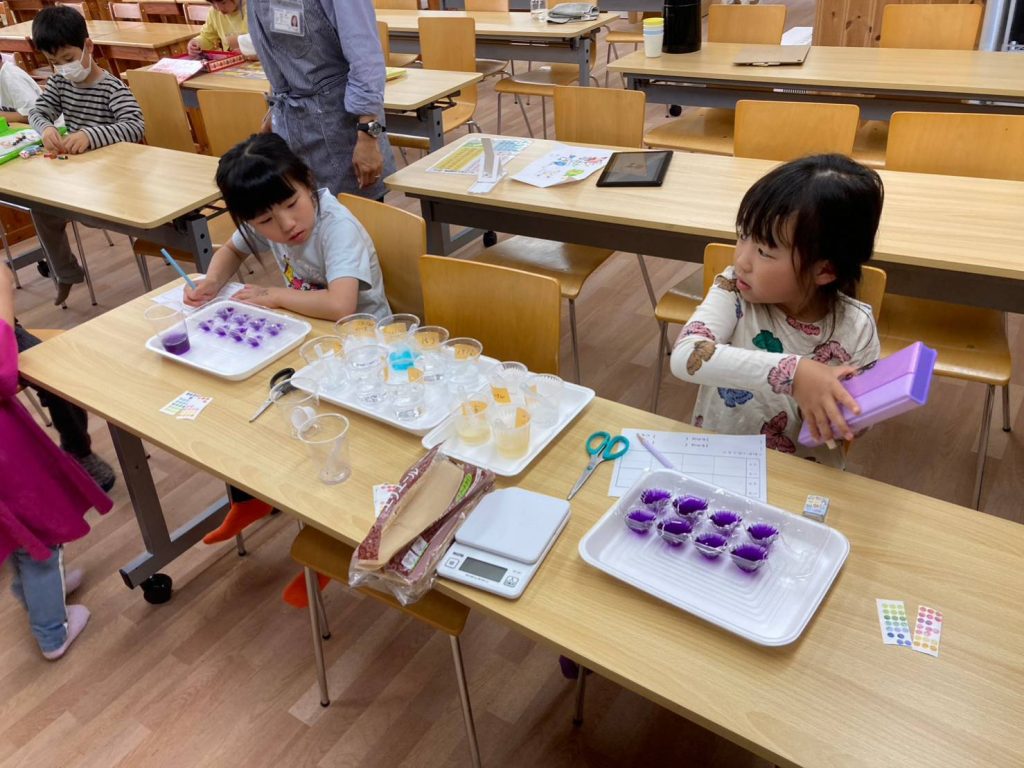 上の画像は、5月のじっけん教室で、色水マジックをしているところです。