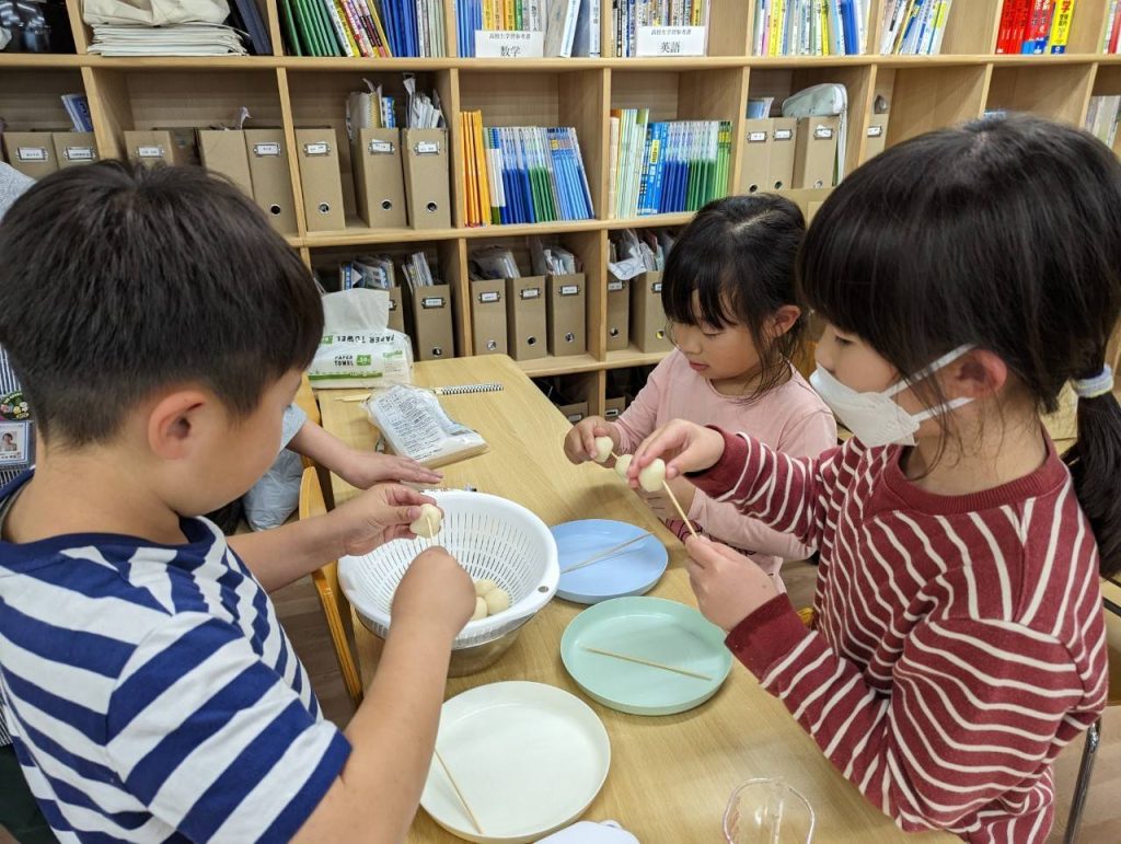 上の画像は、5月のおりょうり教室にて、おだんごを作っているところです。
