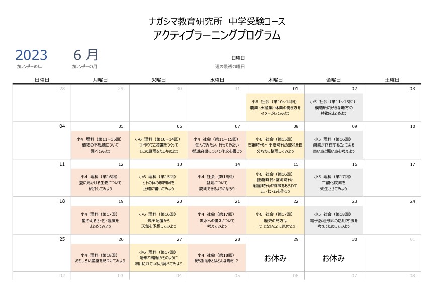 ここでは、6月のアクティブラーニングの月間スケジュールをご紹介します。