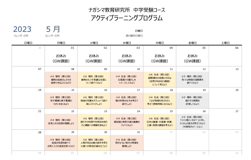 ここでは、5月のアクティブラーニングの月間スケジュールをご紹介します。