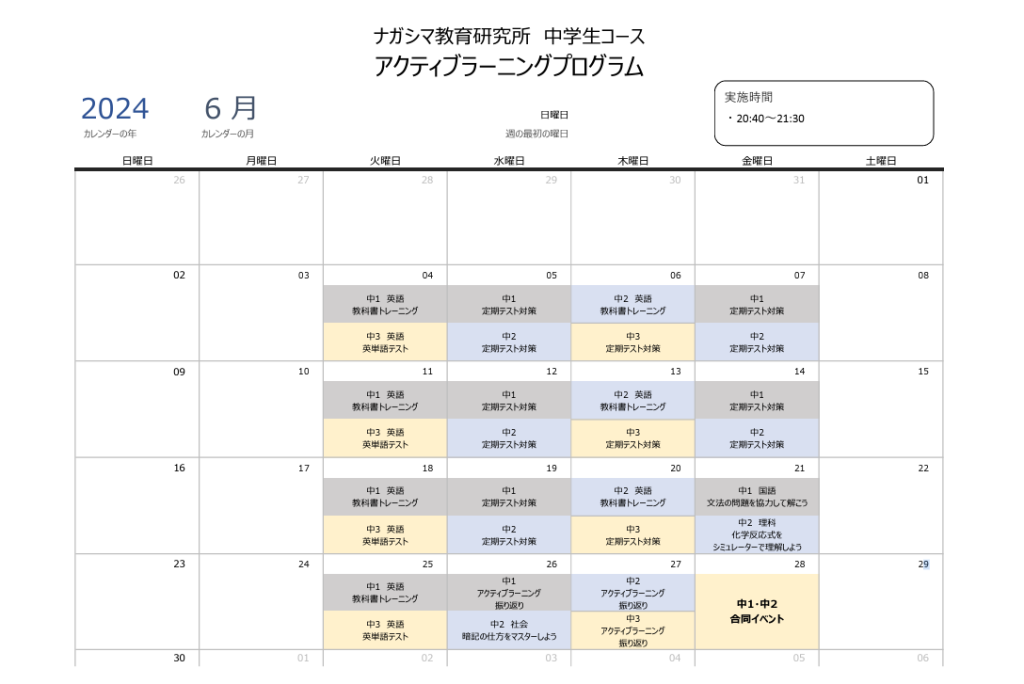 ここでは、6月のアクティブラーニングの月間スケジュールをご紹介します。